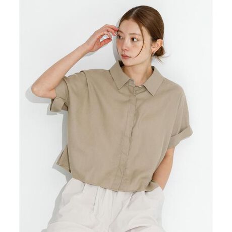 釦が隠れる仕様とドルマンスリーブで、メンズライクになりがちなシャツもブラウス感覚で女性らしく着こなせます。