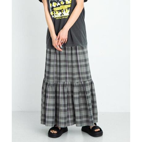 シンプルなトップスと合わせても映えるティアードデザインが特徴。