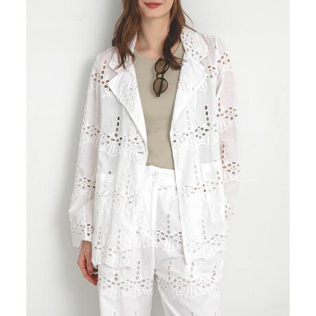 カジュアルな雰囲気のレースをジャケットに落とし込んだサニーレーベルらしいカジュアルながらに女性らしさも引き立てる1枚に仕上げました。
