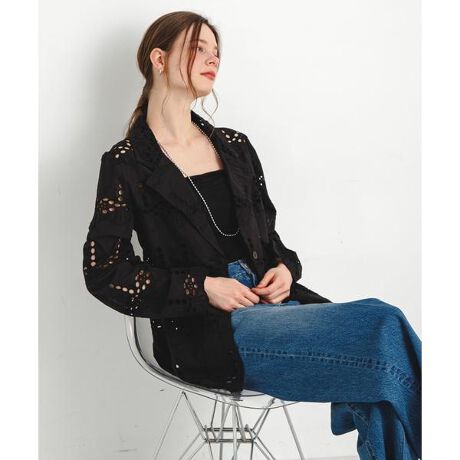 カジュアルな雰囲気のレースをジャケットに落とし込んだサニーレーベルらしいカジュアルながらに女性らしさも引き立てる1枚に仕上げました。