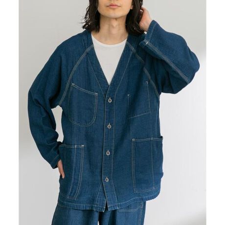 ノーカラーのデザインが首元をすっきり見せ、インナーとのレイヤードを楽しめる万能なアイテム。