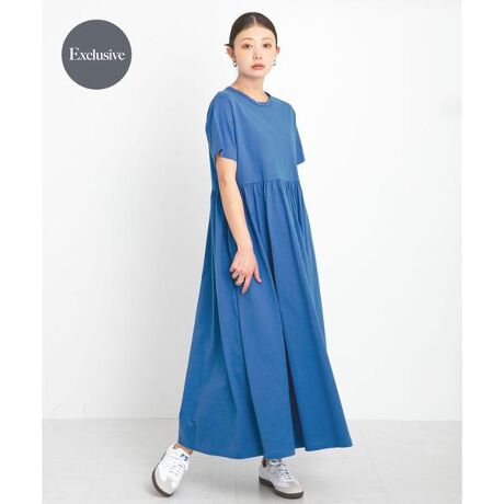 切り替えから広がるギャザーデザインで、楽な着心地ながら1枚で着映えすること間違いなし◎