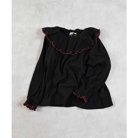 首元と袖口はゴム仕様にで、ふんわりとしたスタイルに。