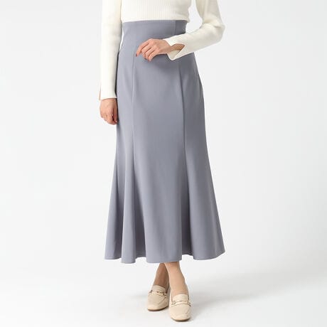 【WEB限定アイテム】なだらかに広がるマーメイドシルエットが女性らしさを際立たせるスカート。背面にはレースアップを施しており、後ろ姿のアクセントになります。ウエスト位置を高く見せるデザインがポイント。季節の変わり目のお出かけスタイルに重宝したいアイテムです。
