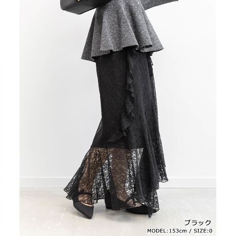 繊細なレースのラッフルデザインが目を惹く、マーメイドスカート。