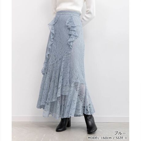 繊細なレースのラッフルデザインが目を惹く、マーメイドスカート。