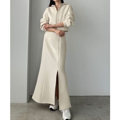 Louere 裏起毛スウェットショートパーカー+スリットマーメイドスカートSET