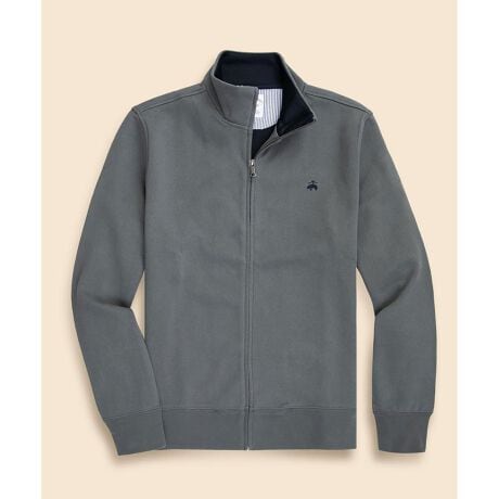 軽量でナチュラルな質感のコットン/ポリエステル生地を表裏両面に使い、ダブルフェイスで仕上げました。裏側まで美しい丁寧な仕立てです。程よいハリ感と厚みがあり、襟元は美しい立ち上がりをキープ。カジュアルながらも上品な印象を演出します。ジップを開けた時に見える内側のコントラストカラーと、左胸に施されたGF(ゴールデンフリース)マークの刺繍がアクセントです。