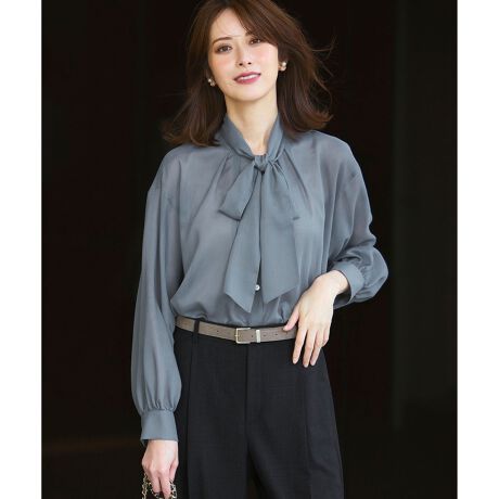 トレンド感のあるシアー素材のボウタイブラウス