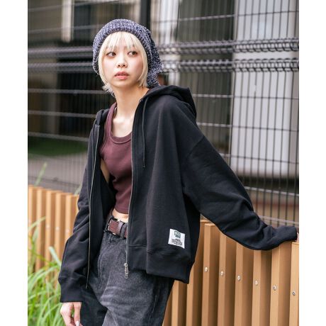 綿100%の柔らかな素材感のフルジップフーディー。