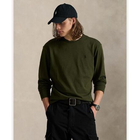 コットンジャージーで仕立て、特別なウォッシュ技法で驚くほど柔らかな風合いを生み出したTシャツ。アイコニックなポニー刺繍でシグネチャーのアクセントをプラスし、Poloならではの定番スタイルを演出。・クラシックフィット:胸、ウエスト、袖にかけてゆったりとしたカット、低いアームホール・クルーネック・長袖、リブカフス・左胸にシグネチャーのポニー刺繍・Ralph Laurenのコットン製品を選ぶことで、環境の保護と修復に努めながら、コットン業界が今後も成長を続けられるように支援するBetter Cotton(TM)ミッションへのRalph Laurenの取り組みをサポートすることになります・本商品は物質収支方式に則って材料を調達しているため、全ての製品にBetter Cotton(TM)が含まれない可能性があります・モデル身長185cm、着用サイズM※商品の色味は、光のあたり具合など諸条件により色感が多少異なって見える場合がございますので予めご了承下さい。 【素材】・本体:綿 100% 装飾部分を除く【生産国】カンボジア