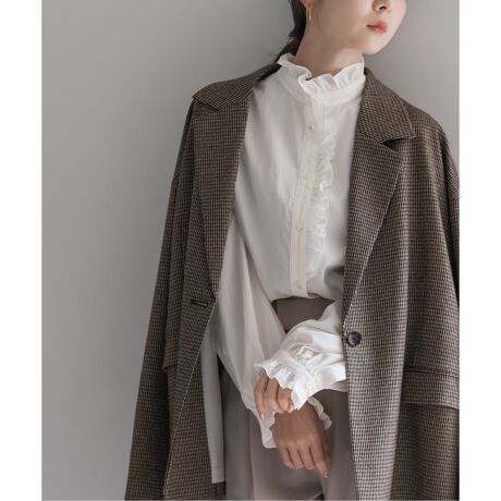 フェミニンなディテールをスタイリッシュに着こなす今シーズンのトレンドにぴったりなフリルブラウス。