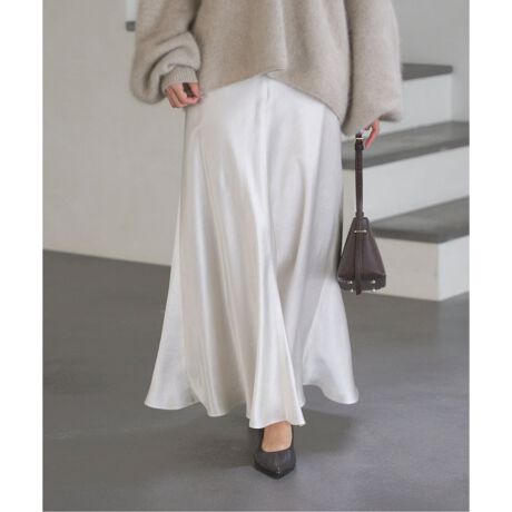 NOBLE名品スカートである「ナローAラインサテンスカート」と同じ生地を使用した、旬なフレアスカートが登場!