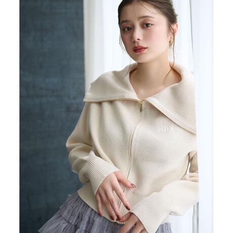 羽織りでもトップスでも着られるニットアウター。綿タッチの糸とポリエステルの軽量な糸で編んだ軽くてふんわりとした風合いです。軽量でシワになりにくく、季節の変わり目は持ち運びにも便利です。大きな襟で小顔効果を狙いつつ、ファスナーの開き具合でオフショル風にも着ていただけます。※撮影時照明の関係により、色味が違って見える場合がございます。またパソコン・スマートフォンなどの環境により、若干製品と画像のカラーが異なる場合もございます。予めご了承ください。商品の色味は、商品単品画像をご参照下さい。※商品画像はサンプルのため、色味やサイズ等の仕様に変更がある場合がございますので、予めご了承ください。