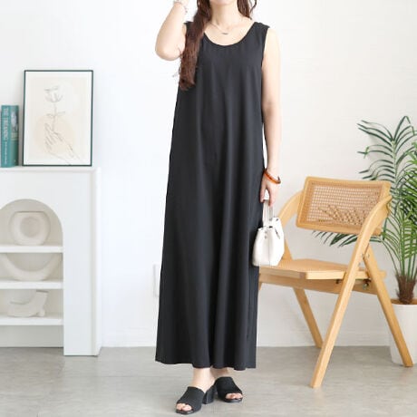 しなやかに揺れるAラインシルエットが魅力のノースリーブワンピース。選べる2丈仕様で、自分のスタイルやシーンに合わせた丈感が選べるのも嬉しいポイント。ストンと落ちる縦ラインがウエストや腰まわりヒップラインまでさりげなくカバー。胸元はUネックでデコルテを美しく演出し、華奢見せ効果もあり◎。素材は肌にやさしい柔らかコットン混で、通気性と軽やかな着心地を実現。小物次第でカジュアルにもモードにも寄せられ、オンオフ使えるのも魅力。シンプルの中に計算されたシルエットと丈感が光る一枚。あなたの毎日をもっと心地よく、もっとスタイリッシュにしてくれます。