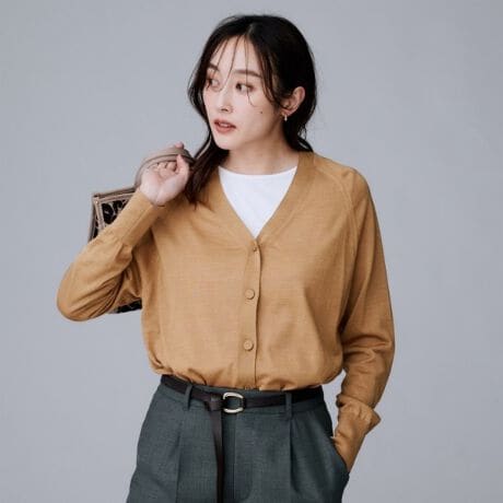 18Gエクストラハイゲージニットを使用した薄手の洗えるウールシルク素材で、軽やかさとともに洗練された印象のVネックカーディガン。