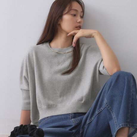 スウェットライクに仕上げたドルマンニットプルオーバー