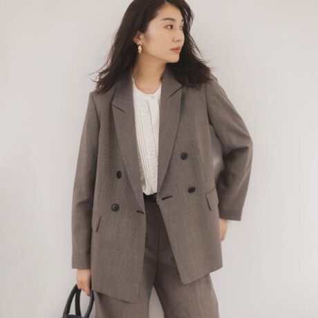 定番になりつつあるダブルブレストのテーラードジャケットは、メンズライクなピークドラペルがポイント。