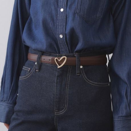 ハート型のバックルが特徴的で、シンプルなコーディネートに華やかさをプラスします。