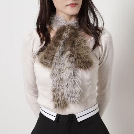 カラーミックスの軽やかな毛足があるスリムマフラー