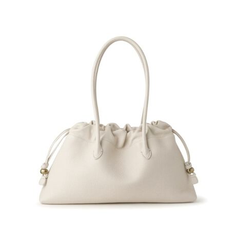 スタイリングを選ばず、デイリーに使える存在感が魅力の巾着型ハンドバッグ。