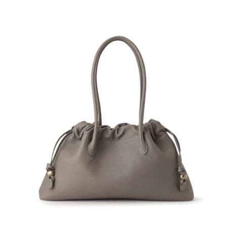 スタイリングを選ばず、デイリーに使える存在感が魅力の巾着型ハンドバッグ。