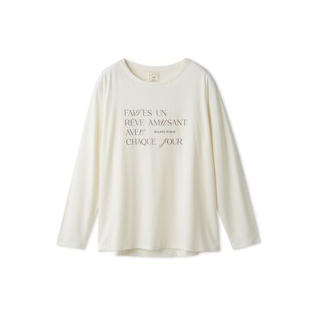 とろんとしたなめらかな風合いを追求した、レーヨン素材のデイリーなルームウェアシリーズです。肩をコンパクトに見せ、裾にフレアを効かせたフェミニンなシルエットのロンT。配色ロゴプリントを効かせた、シンプルながらもスタイリッシュなアイテムです。同シリーズのロングパンツとコーディネートしてお楽しみください。