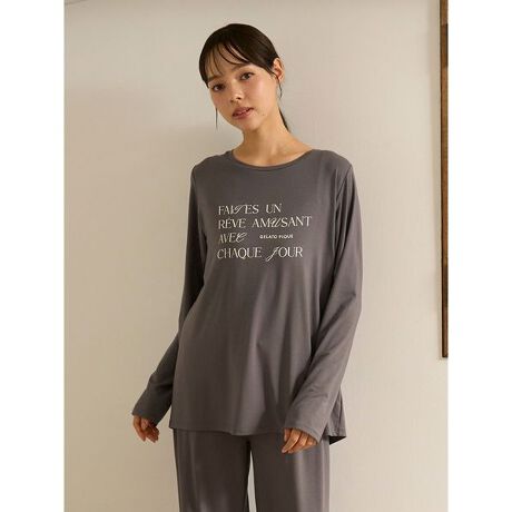 とろんとしたなめらかな風合いを追求した、レーヨン素材のデイリーなルームウェアシリーズです。肩をコンパクトに見せ、裾にフレアを効かせたフェミニンなシルエットのロンT。配色ロゴプリントを効かせた、シンプルながらもスタイリッシュなアイテムです。同シリーズのロングパンツとコーディネートしてお楽しみください。