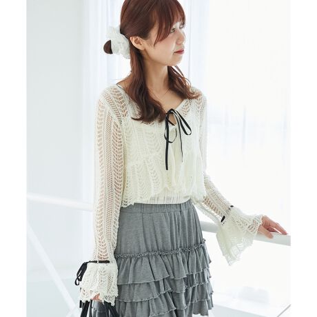 ざっくりとしたレース編みが今シーズンのムードにぴったりなロマンティックなセットアイテム。