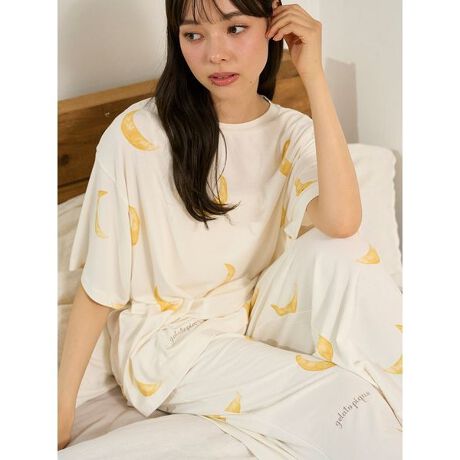 優しいタッチで描いた月とフェザー、くものモチーフをプリントした、なめらかな素材感のカットソーシリーズです。ゆったりしたサイズ感のTシャツは、暑さが残る夏の終わりから、秋口にかけてのおやすみ時間にちょうど良いリラックス感を届けてくれるアイテム。色は月柄のイエロー、フェザー柄のラベンダー、くも柄のブルーの3色をご用意しました。同シリーズのロングパンツやピローケースと組み合わせてお楽しみいただけます。