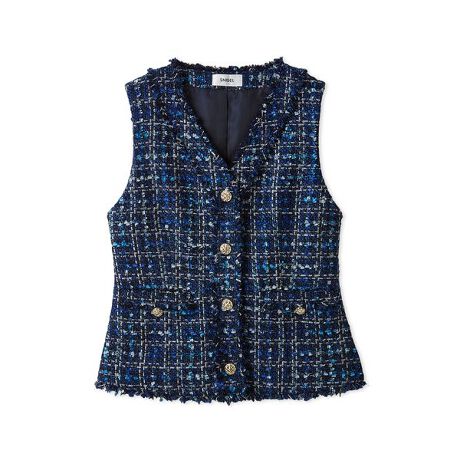 上品ツイード生地でお作りしたSNIDELで定番人気のツイードジレが今季も登場。スカートとのバランスが取りやすいように、普段より丈は少しだけ短くデザインしました。カラーにより異なるツイード生地を使用していますが、普段使いしやすいカラーリングで揃えています。襟ぐりや前立て、フェイクポケット位置にさり気ないフリンジカットを施してクラシカルな中にも華やかさをプラス。特別感のあるゴールドボタンがリュクスな印象へと導きます。ツイードミニスカート(SWFS254267)と同素材でお作りしており、セットでのご着用もおすすめです。