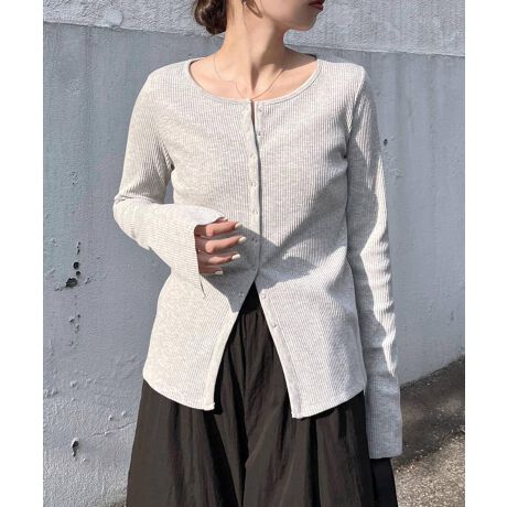 セルフカットリブ スナップボタン 長袖 カーディガン トップス