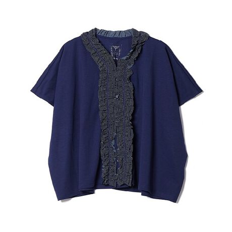 衿ぐりから前中心にたたいているドット生地がトレンド感を出しつつ、コーディネートのアクセントに◎。
