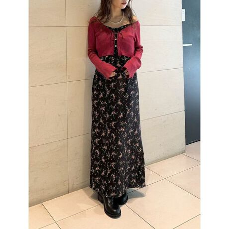 毎年好評のニットカーディガン×キャミワンピースのセットが今季も登場。コンパクトなクロップド丈のカーディガンと、女性らしいナローシルエットのキャミワンピースの組み合わせは相性抜群。ワンピースの胸元にはギャザーとリボンをあしらい、程よく甘さをプラス。カーディガンにはゴールドのホックを採用し、上品なアクセントを添えました。セットでの着用はもちろん、単品でも着回しやすい万能アイテムです。