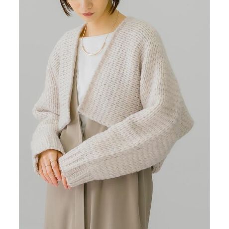 秋コーデに欠かせないカーディガンが早くも登場。柔らかい印象を放つ手編み風仕様&スタイルアップが期待できるショート丈がポイントです。少しMIX感のある糸を採用したのも特徴的。目を惹くカラーバリエーションとなっております。