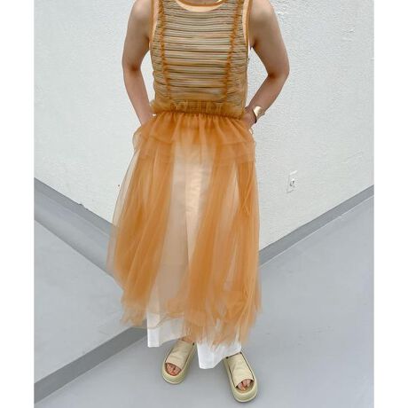 【コーディネートが華やぐ、トレンド感たっぷりなチュールワンピース】