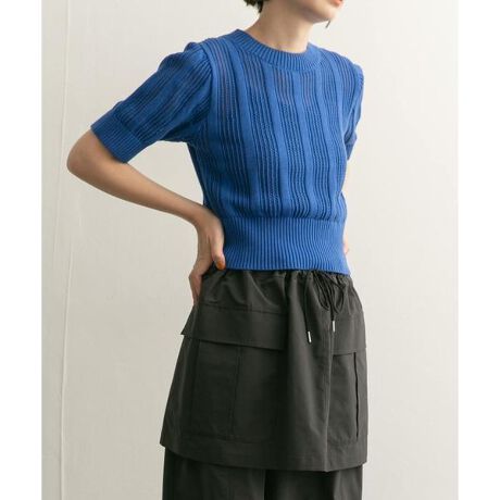 透かし編みで太ストライプ仕様が特徴的なサマーニット。コンパクトなサイズ感なので自然とスタイルアップが叶います。メイン使いはもちろん、サロペットのインナーにも活躍します。顔周りが華やかになる2色をご用意しました。