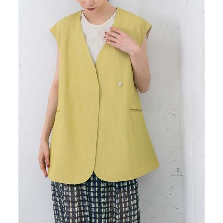 きりっとした表情を持つ、引き続きマストなジレが登場。ややルーズでリラックス感のあるサイジング&ミニマルなデザインは、合わせるものを選ばない万能アイテムです。レーヨンブレンドのドライタッチな素材と、ラウンドを描くシルエットがスタイリングに上品さをプラスします。夏に合わせやすいカラーリングをご用意しました。