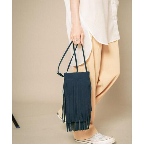 たっぷりのフリンジが目を惹くショルダーバッグ。斜め掛けでも物を取り出しやすい程よいショルダーの丈感が嬉しいポイント。スウェードの生地が大人な印象をプラスします。内側にポケットが付いているので見た目よりも収納力があって◎