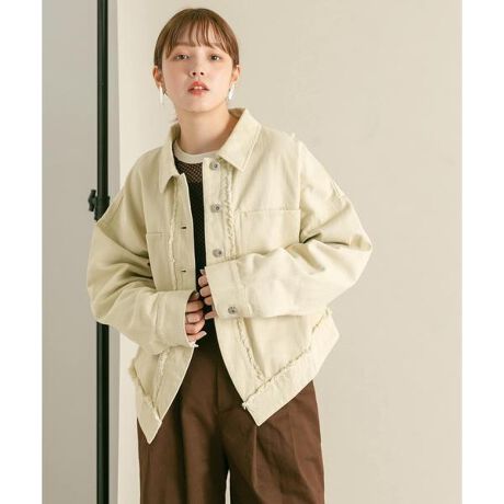 フリンジディテールがポイントのショート丈ジャケット。カットラインが他には無いヘムデザインも特徴的です。また、表面感のある生地に加工を施すことでヴィンテージライクな風合いに仕上げました。同素材のフリンジストレートパンツ(KB46-24F120)もございます。