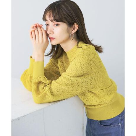 様々なパターン編みを組み合わせたレトロなムード漂うニット。コンパクトなサイズ感&女性らしいボリュームスリーブが魅力的。ベーシックで合わせやすいOFF、アクセントになるフレッシュなYELLOWとBLUEをご用意しています。