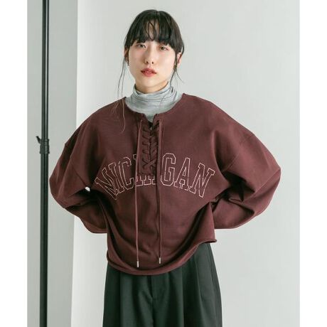 【フロントロゴ×レースアップディテールを組み合わせたカジュアルトップス】