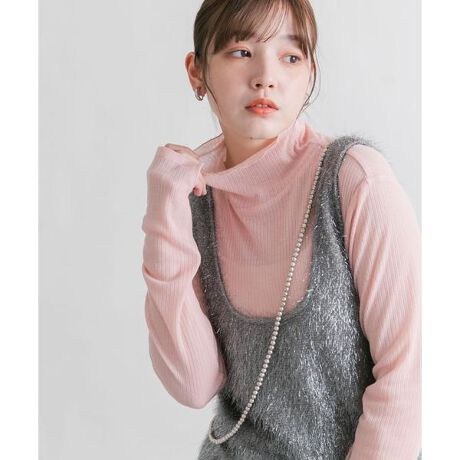 程良い透け感とリブがポイントのトップス。ハイネックとロングスリーブ仕様なので、スタイリングのアクセントにぴったりです。伸縮性もあり肌触りの良い素材感はストレスフリーな着心地を実現します。持っておくと着回せる1着です。
