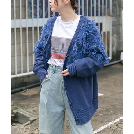 【ジャガードフリンジがこなれ感を演出するカーディガン】