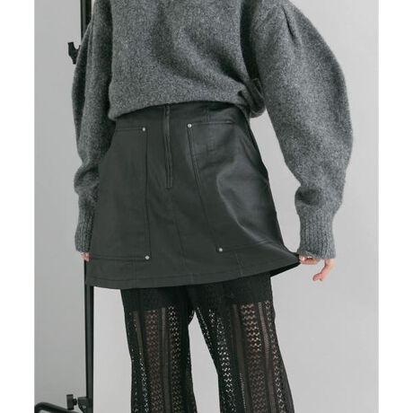 ツイル素材にコーティングをすることで、レザーライク見えするミニスカート。少しマットなツヤ感はハードになり過ぎず穿いていただけます。ミニ丈としてそのまま穿くだけでなく、パンツをレイヤードしたスタイルもイチオシです。