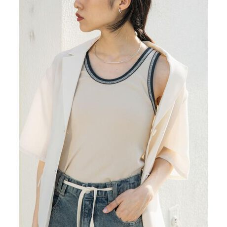 バイカラー配色がポイントのタンクトップ。インナー使いのみならず、メインにも使用いただけます。前後2WAYの着用が可能で、お手持ちのタンクトップにUネック側を前にレイヤードしていただく着こなしもおすすめです。