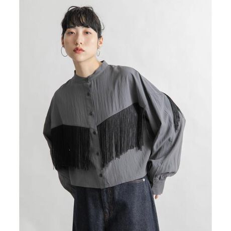 フリンジディテールがアクセントになったデザインシャツ。クロップド丈とフリンジのバランス感にこだわりました。程よい抜け感とモードな雰囲気をプラスしてくれ、コーディネートに取り入れやすいように同色のフリンジに仕上げました。