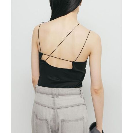 夏場でもさらっとした着心地が叶う、スムース素材を使用した取り外し可能なカップ付きキャミソール。華奢な肩紐は女性らしい印象を与え、バックのアシンメトリーデザインもポイントです。ナチュラルな肌見せや、シアーアイテムと好相性です。