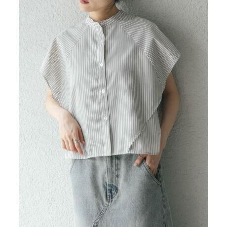 ボックスシルエットと、二の腕をしっかりとカバーしてくれるサイドのマチがポイントのストライプシャツ。肩から裾にかけてレイヤードされているので、軽やかなシルエットを演出します。また、身体のラインを拾いすぎず、滑らかな生地で暑くなる季節にぴったり。どのカラーも爽やかな印象に仕上げてくれます。