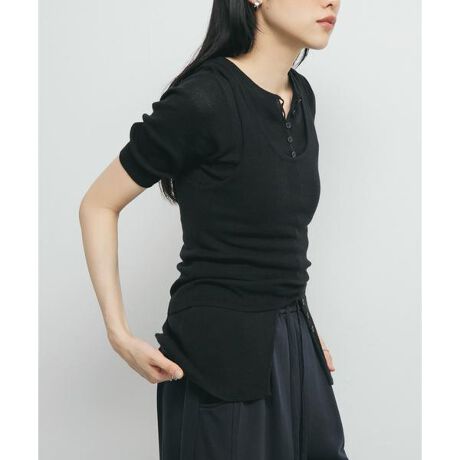 前開きニットとノースリーブトップスをレイヤードしたセットアイテム。清涼感のある素材を使用しているので、暑い季節でも着ていただけます。少し細身な印象ながらも、伸縮性のある編地を使用しているので着心地も良いです。釦を開けた抜け感のあるスタイリングがおすすめ。雰囲気の異なる豊富なカラーバリエーションにも注目です。